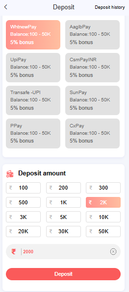 To recharge your wallet, simply log into your account. Click on the wallet option and select the deposit choice.