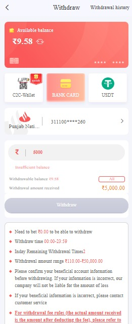 Note:- Please keep in mind that withdrawals may take up to 24 hours to appear in your bank account.