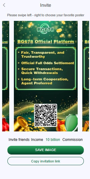 This is not a straight incentive, but rather a commission for spreading the BG 678 invitation code. When you share this code with your friends, a commission is added to your account whenever they make a deposit.
