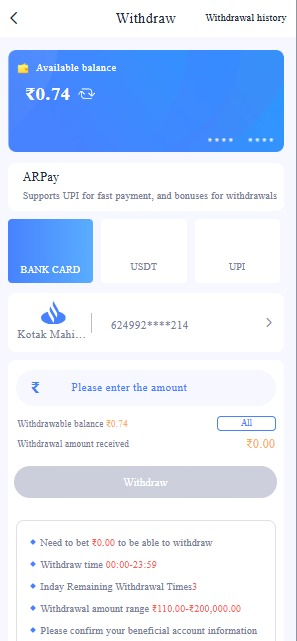 After winning your money, you can Withdraw it to your bank account by following the steps . The process of withdrawing your winnings is uncomplicated. Here’s how to withdraw money from Goa Game Official Website-Login, Register & Download App into your bank account: