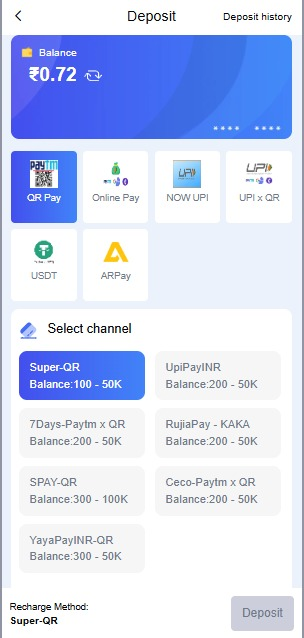 To play the Sikkim Game App | Login & Register, you must have money in your account. Furthermore, the method of making a deposit is straightforward. Adding money to your account is simple, and you have a variety of payment methods to select from: