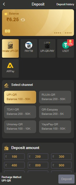 You must have some money in your account in order to play the TP Play App | Sinup ₹500. Additionally, depositing money is a simple process. You must first add funds to your TP Play account in order to play games and place bets on any games. The following instructions will help you transfer funds from your bank account to your TP Play account so you may play games: